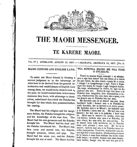 The Maori Messenger - Ko te Karere Maori 1855-1860: Volume 4, Number 6. 15 August 1857 |