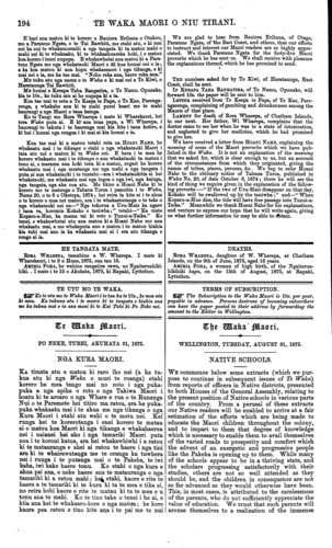 Te Waka Maori o Niu Tirani 1871-1877: Volume 11, Number 17. 31 August 1875 |