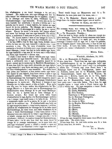 HE korero tenei na Te Makarini, i korerotia i roto i