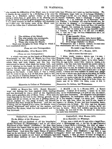 Te Wananga 1874-1878: Volume 2, Number 7. 12 April 1875 |