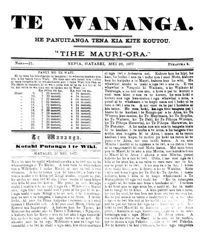 Te Wananga 1874-1878: Volume 4, Number 21. 26 May 1877