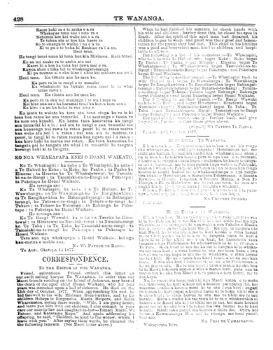 Te Wananga 1874-1878: Volume 4, Number 43. 27 October 1877 |