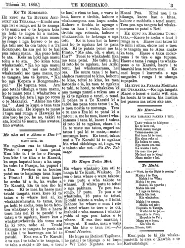 Te Korimako 1882-1890: Volume 0, Number 10. 13 December 1882 |