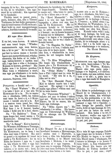 Te Korimako 1882-1890: Volume 0, Number 19. 15 September 1883 |