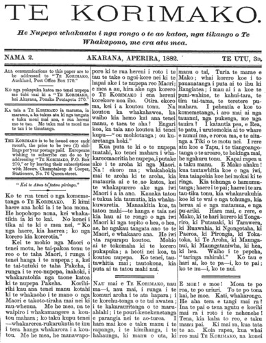 Te Korimako 1882-1890: Volume 0, Number 2. 01 April 1882