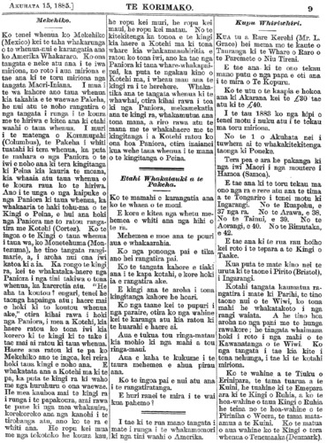 Te Korimako 1882-1890: Volume 0, Number 43. 15 August 1885 |