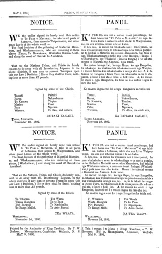 roa. Under the Authority of King TAWHIAO P. Te WHERO-