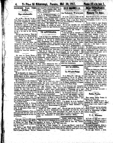 Te Puke Ki Hikurangi, Paraire, Mei 30, 1912. Nama 18 o te tau 1.