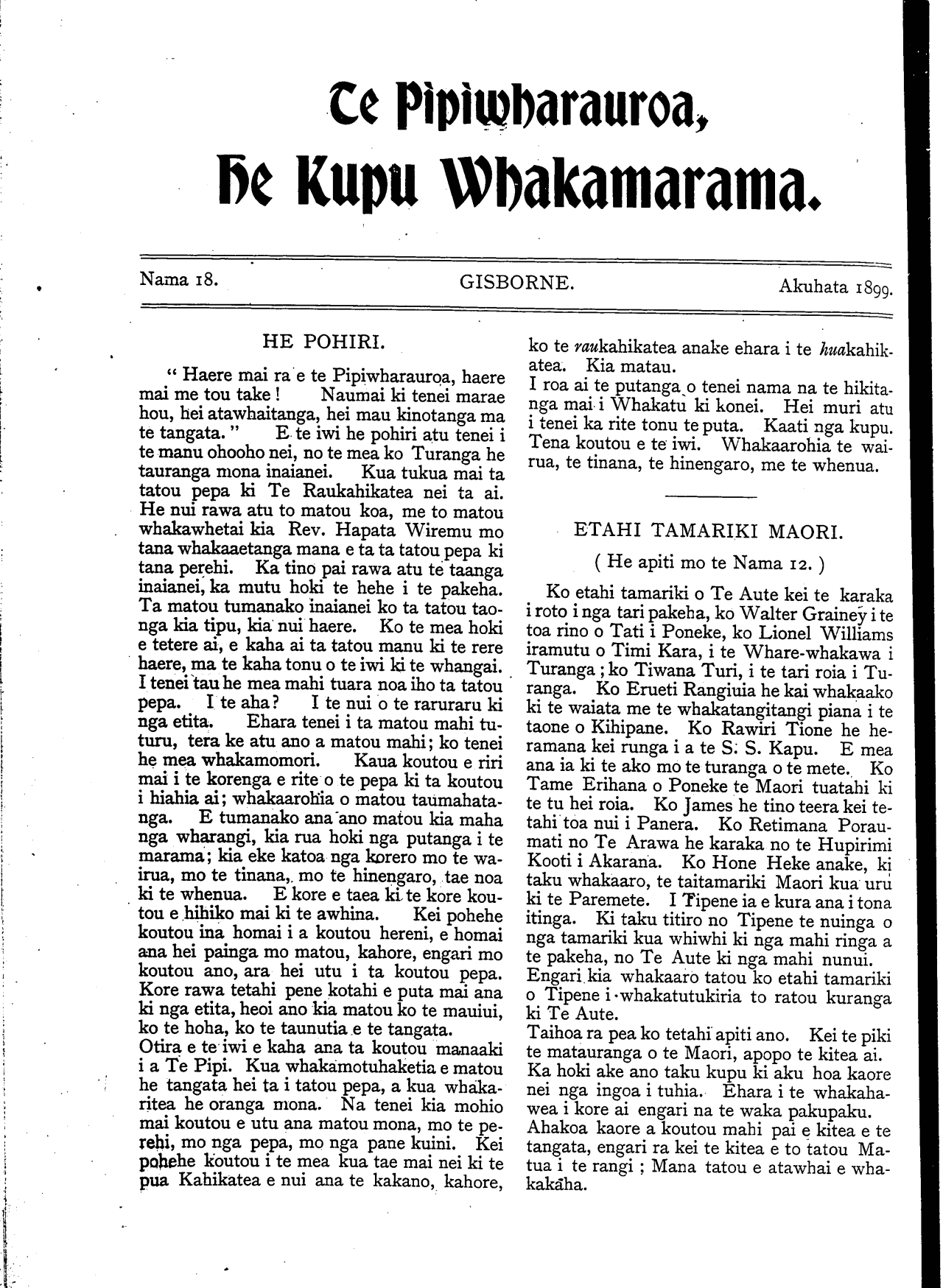 He Kupu Whakamarama 1898: Number 18. 01 August 1899 |