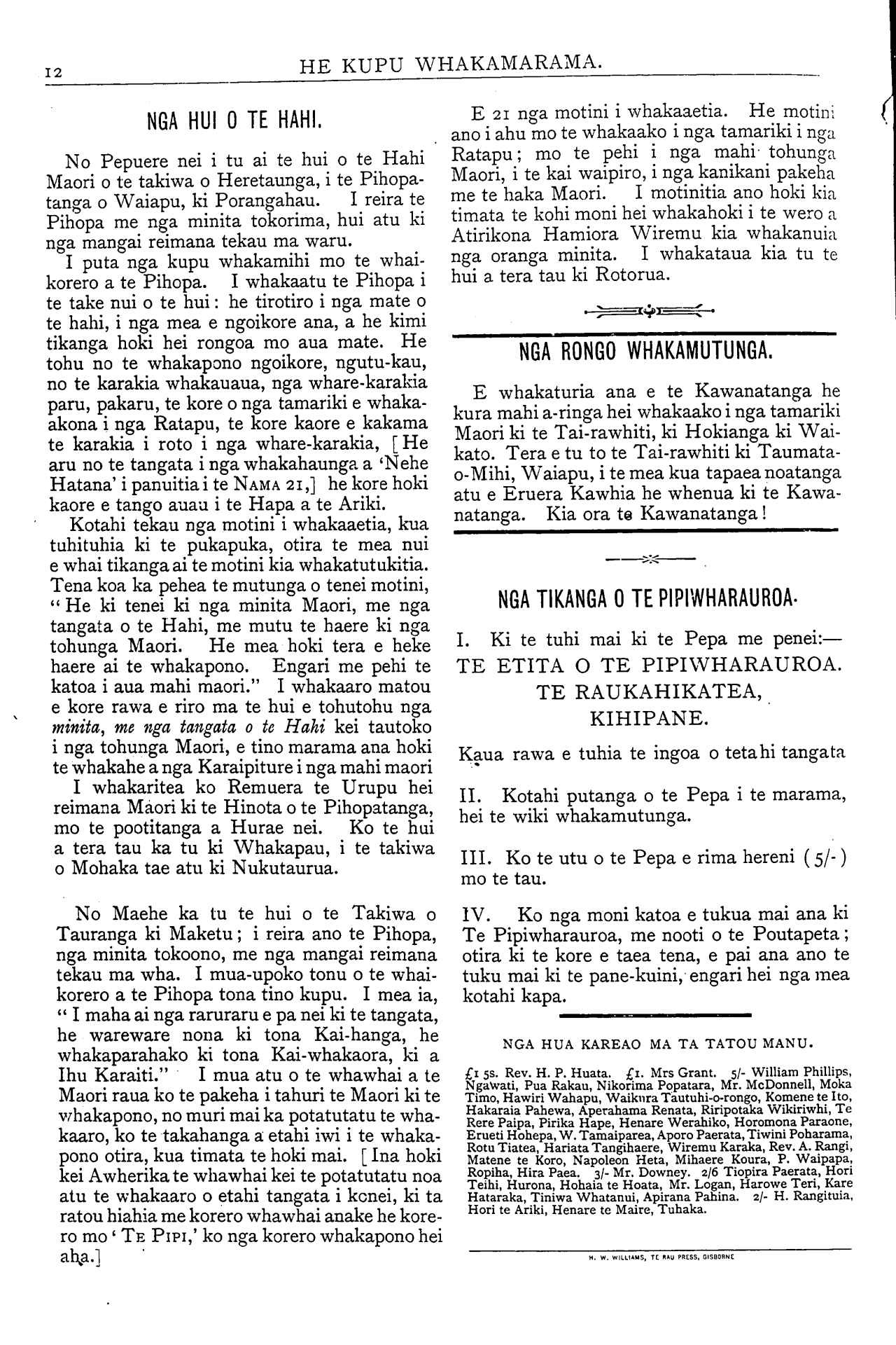 ro mo ' TE PIPI,' ko nga korero whakapono hei