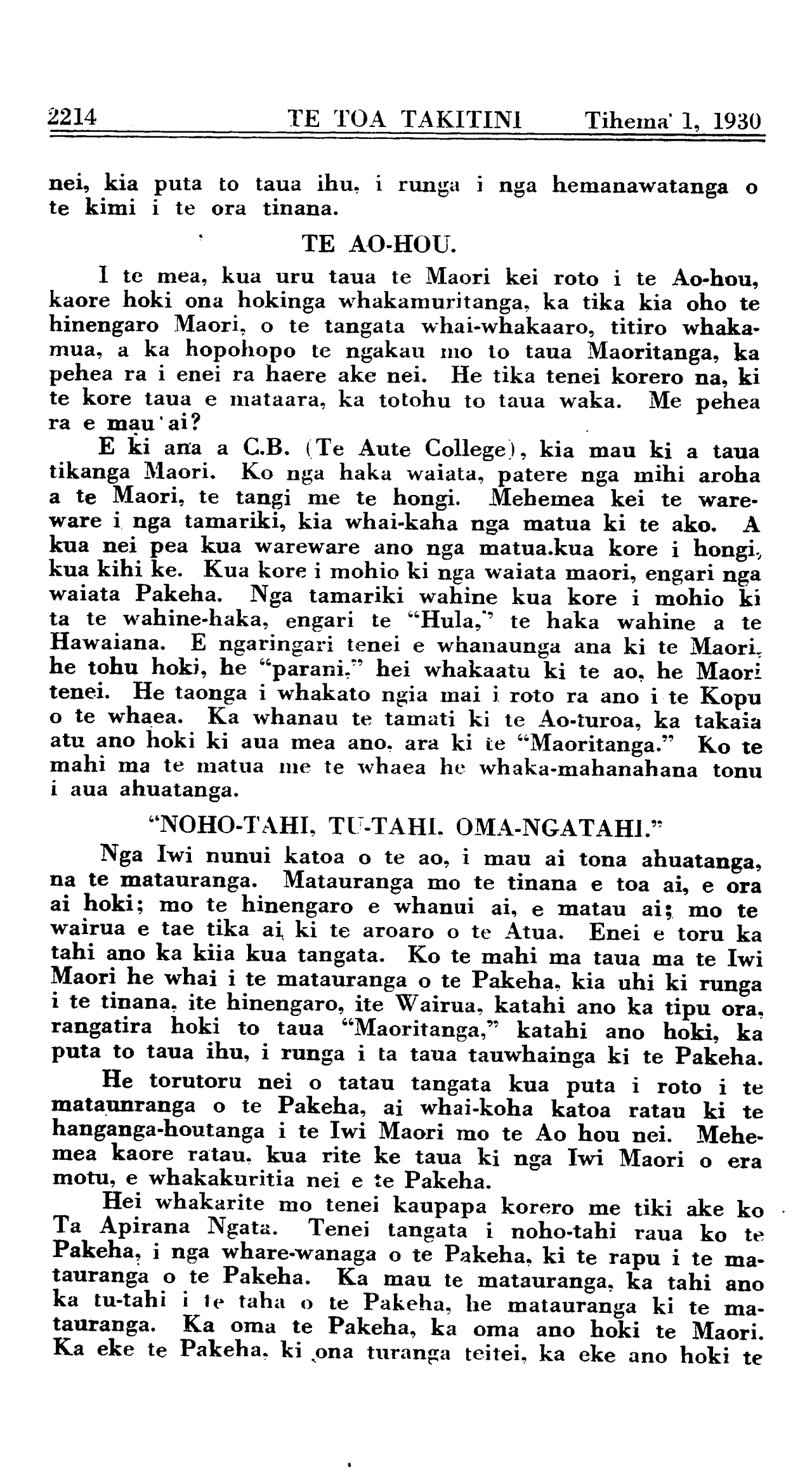 2196\_\_\_\_\_\_\_TE       TOA  TAKITINI     Tihema 1, 1930