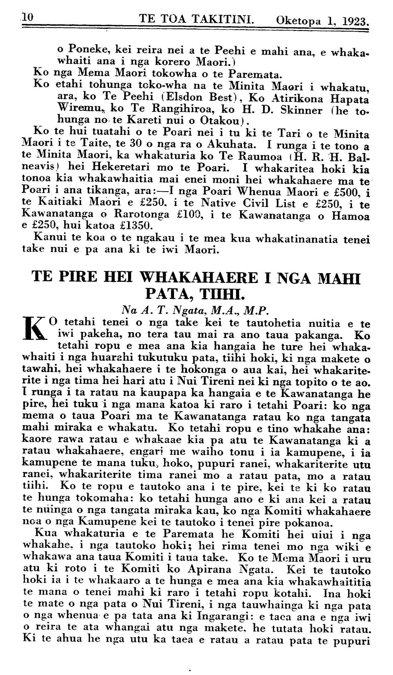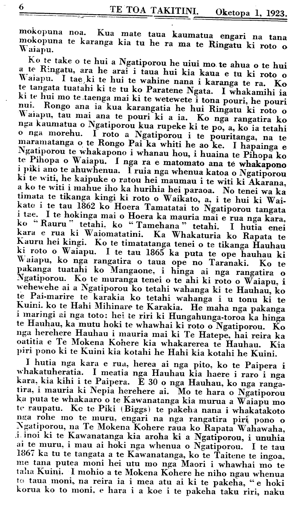 Oketopa 1, 1923. TE TOA TAKITINI.
