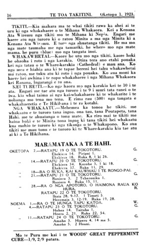 16 TE TOA TAKITINI. Oketopa 1, 1923.
