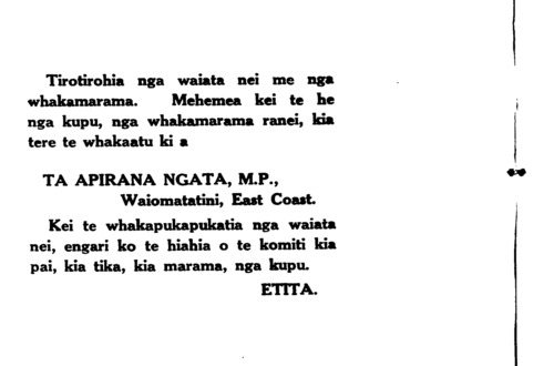 "I hohoro i te ngutu, etc.: —He rarangi enei e haere tonu ana i noto i